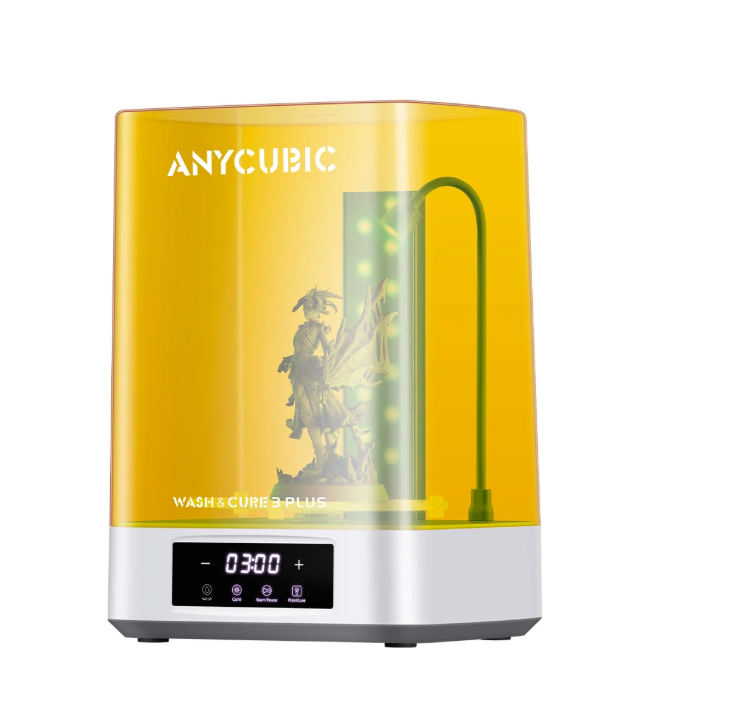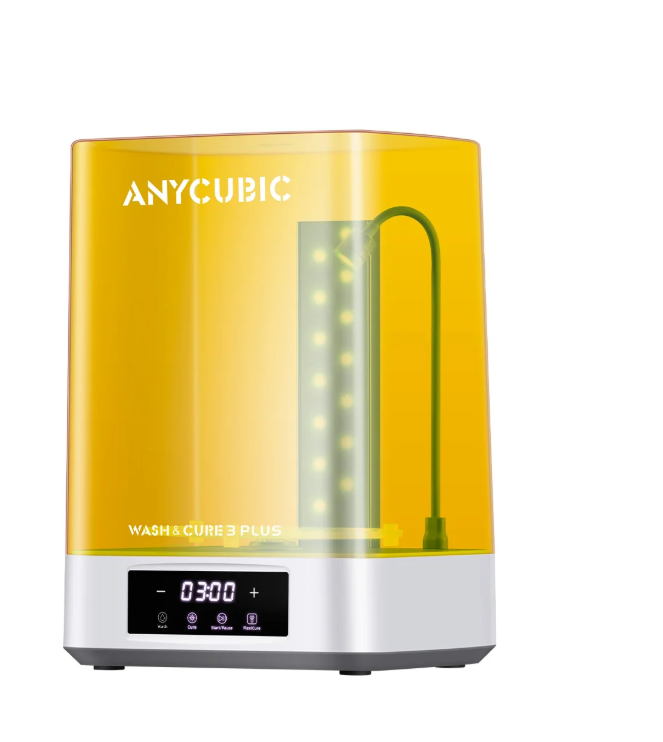 دستگاه Wash & Cure 3 Plus از برند Anycubic یک راهحل کامل برای پسپردازش مدلهای چاپشده رزینی است؛ شستشو و سپس کیورینگ (سختسازی نور UV) در یک دستگاه جمع و جور با ظرفیت ارتقاء یافته. این مدل برای کاربران حرفهای یا نیمهحرفهای که حجم چاپ بیشتری دارند، مناسب است.